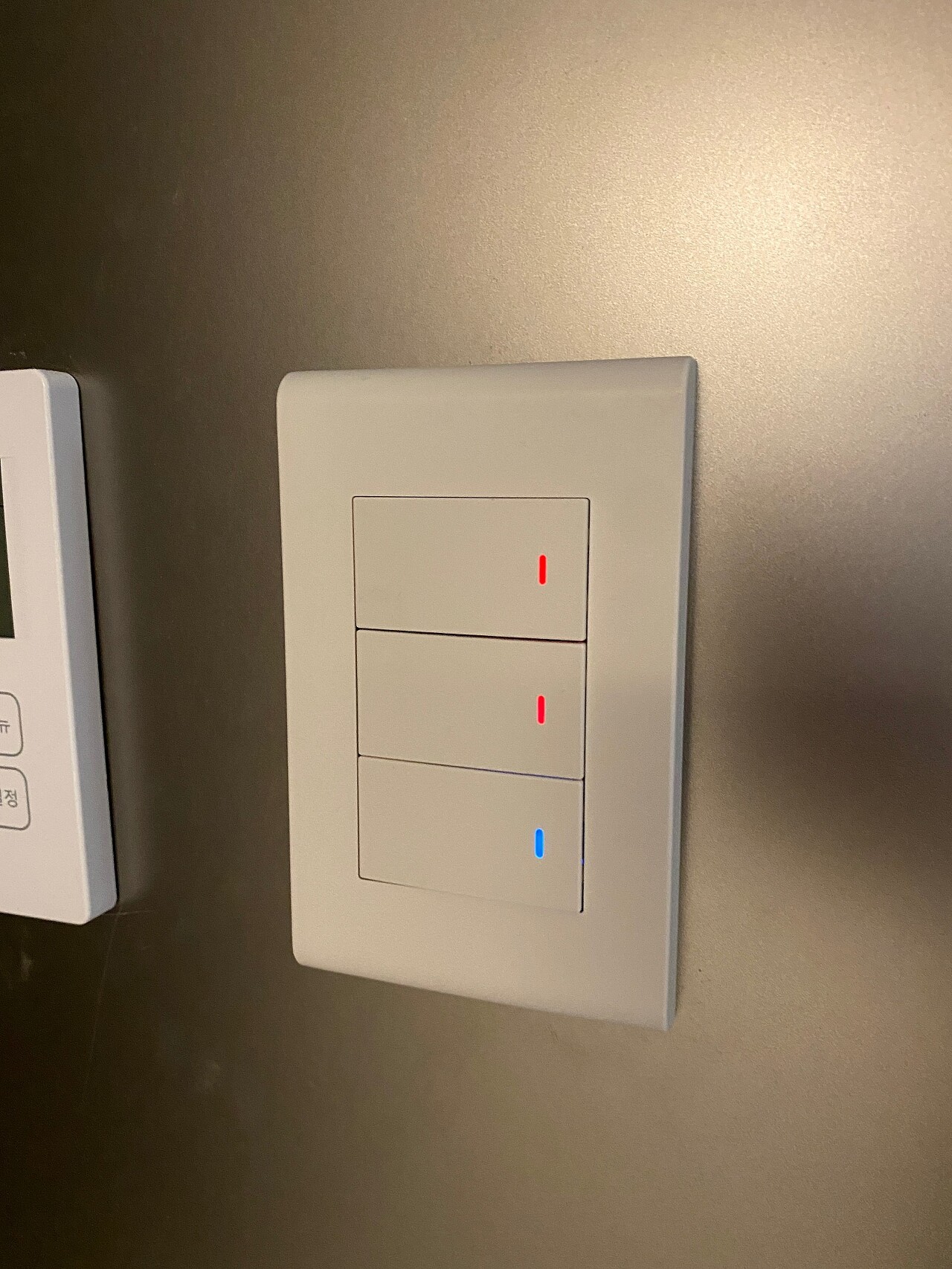 - 추가 조명은 스마트 스위치로, 기존 조명은 거실/주방 우물 2개와 복도 등 3개를 월패드 스위치와 연결하였습니다.