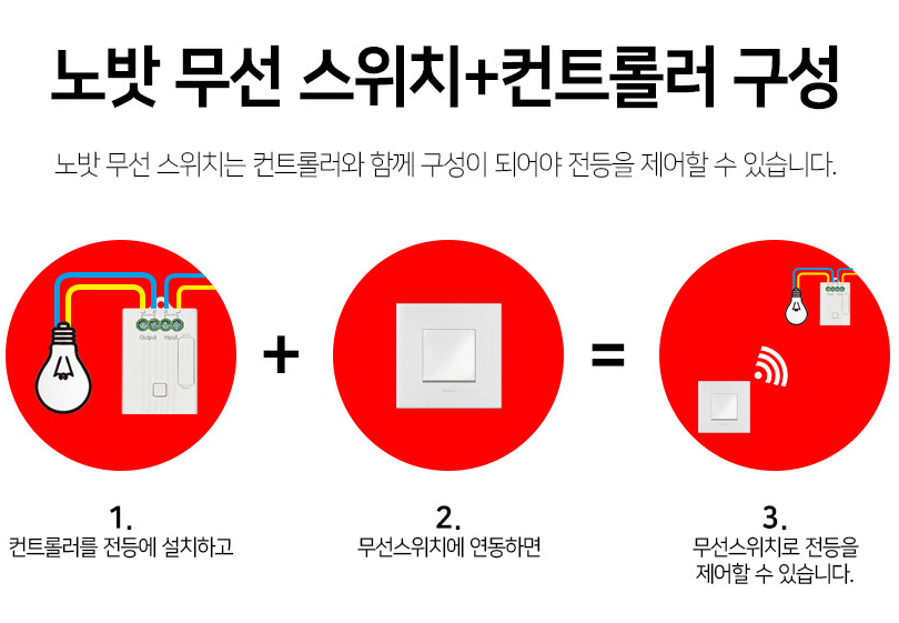 - 문제가 발생할 때 제가 없어도 가족들이 사용할 수 있어야 하기 때문에 컨트롤러 사용되는 것은 제외하고 물리 스위치 형태로 구성하였습니다. (아래와 같은 방식의 리모컨, 무선스위치는 처음부터 제외)